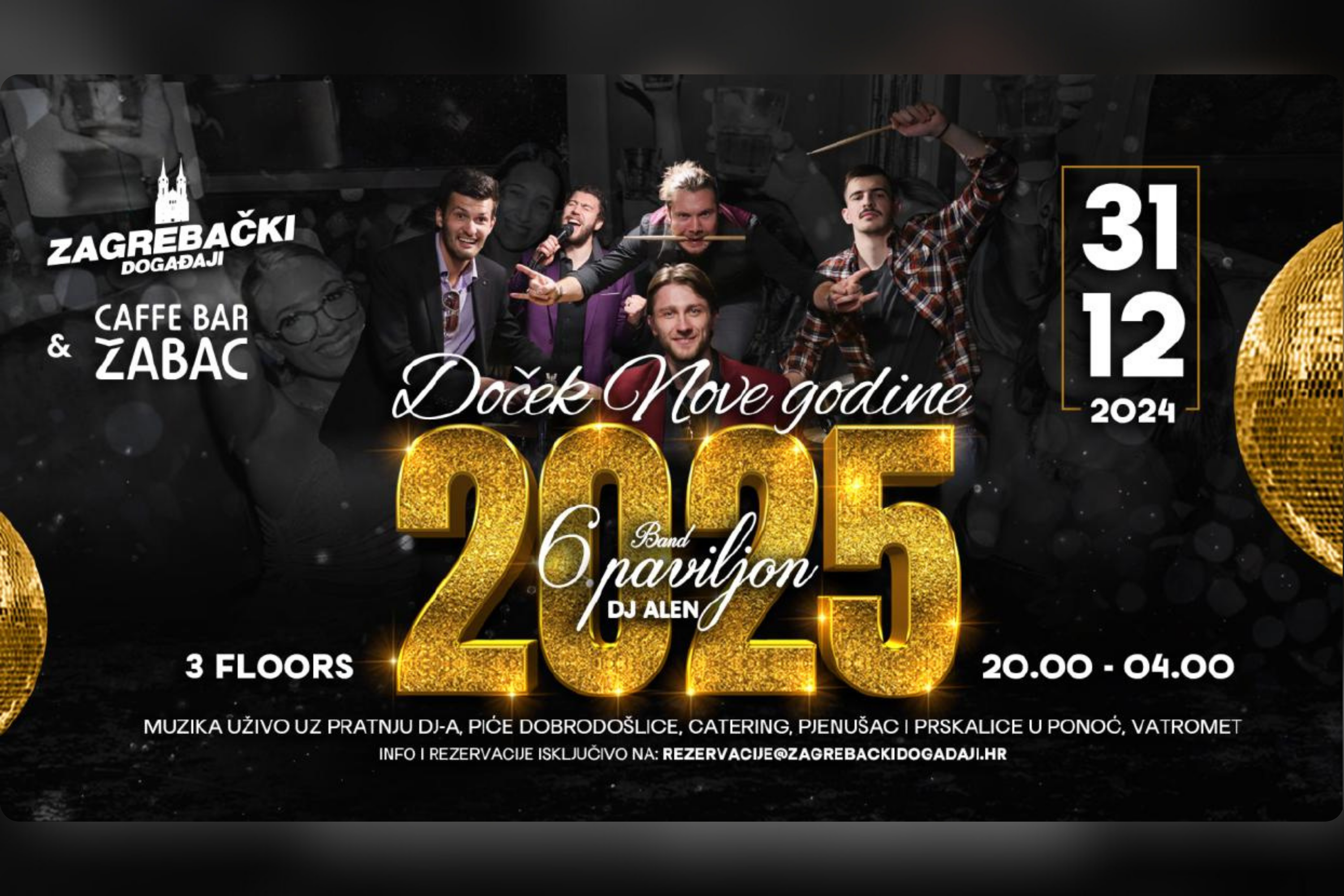 Nakon sedam godina uspješnog rada na organizaciji i promociji događaja, tim Zagrebačkih događaja u suradnji s kultnim Žapcem priprema jedan od najatraktivnijih dočeka Nove godine u Zagrebu! Uz vrhunsku atmosferu, bogat program i iznenađenja, očekuje te doček za pamćenje. Čak tri floora glazbe, live nastup benda Šesti Paviljon i DJ Alen s najboljim pop/rock i ex-yu rock hitovima držati će te na plesnom podiju do ranih jutarnjih sati. Osim vrhunske glazbe, u programu su piće dobrodošlice, finger food catering, pjenušac u ponoć, prskalice, vatromet i fantastično uređeni prostor – sve što je potrebno za savršen doček!