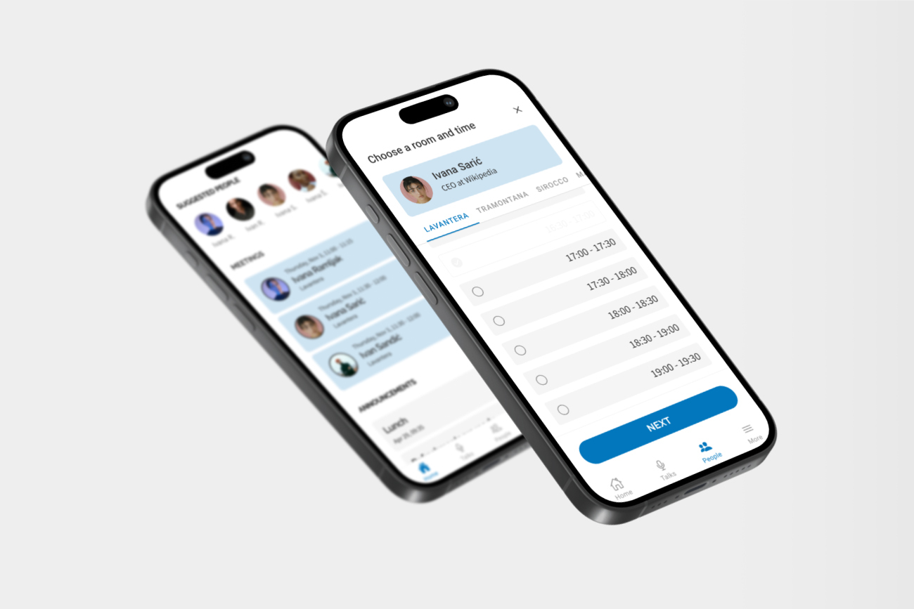 Mobilna aplikacija sudionicima omogućuje pristup svim informacijama koje su im potrebne, poput rasporeda, govornika i izlagača - na jednom mjestu.